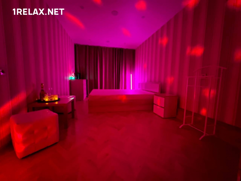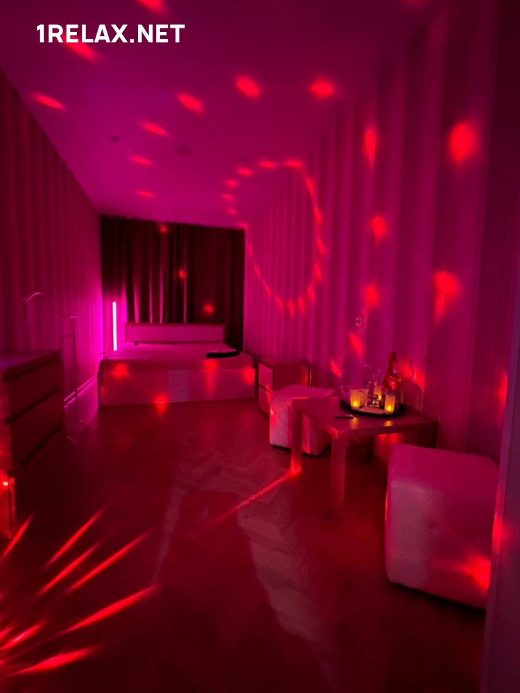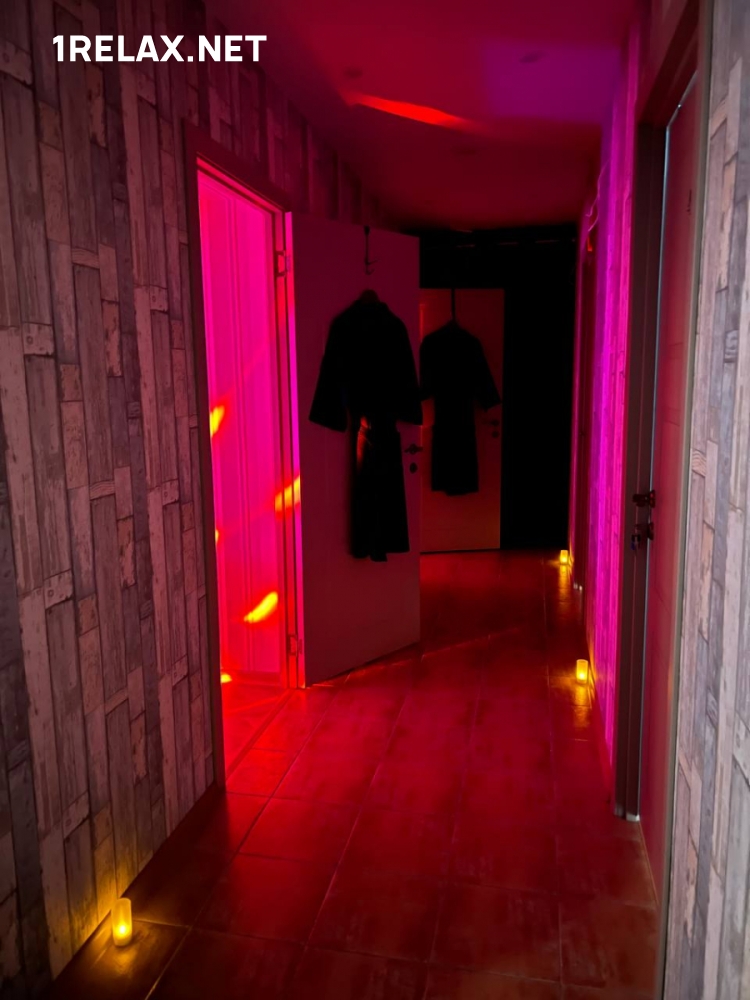 Заведение расположено в чистой уютной двухкомнатной квартире, вход со стороны двора. В массажном салоне гостей ждет свежий ремонт, интерьер в пастельных тонах, загадочная подсветка и атмосфера блаженства.